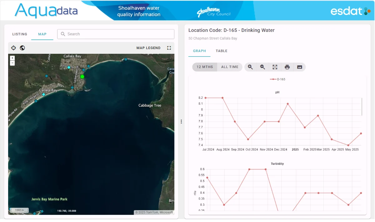 Powered by ESdat, Aqua Data is the Shoalhaven City Council’s public, user-friendly, GIS searchable water quality information portal. The public portal allows anyone to access the region’s latest water quality information and make informed water management decisions accordingly.